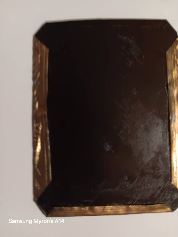 Antique frame and picture c.1855 honoring “Constitution and Union, July 4, 1776”. The picture is Sarah Bridge of Forestville NY which is printed on the back. Part of the engraving on the frame is “CONN No. 82__”. The frame measures 3x2.25".